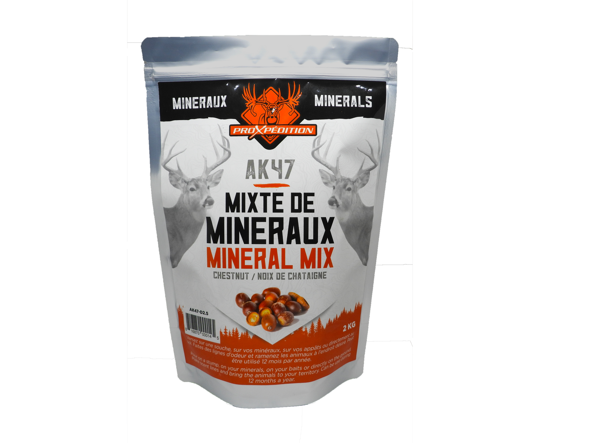 Découvrez ce mélange explosif de minéraux complets. Ce produit de grande qualité spécialement conçu pour les chevreuils est à la hauteur des produits de Proxpedition. Le AK47 pour chevreuil est conçu pour la femelle tout comme pour le mâle. Il est composé de minéraux qui stimulent la lactation et la fécondité de l'animal, et l'aident à optimiser la qualité et la quantité de lait que la femelle produira. Les faons qui en bénéficieront seront en meilleure santé. Le AK47 contient aussi des minéraux de fécondité (le sélénium et le manganèse) qui améliorent l'ovulation. C'est un produit nutritif qui aide à la croissance des chevreuils de votre secteur en stimulant la croissance des veaux et des femelles ainsi que la fortification des bois des mâles. Contribuez à la saine alimentation des animaux de votre secteur et comblez rapidement leurs carences en vitamines et minéraux.