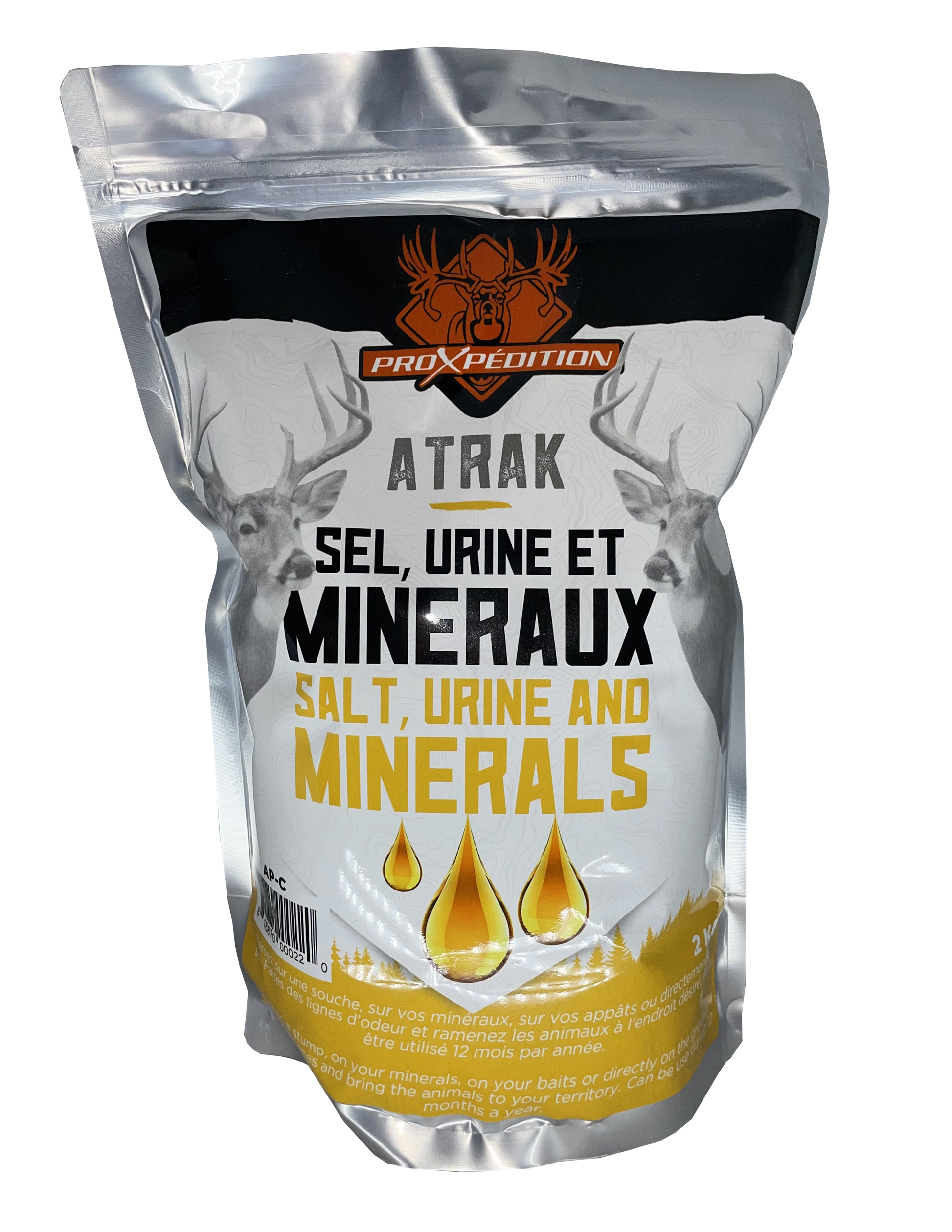 Attirez les animaux à l'endroit que vous choisissez avec le Atrak pour chevreuils. Ce produit est composé de sels, d'urine synthétique et de minéraux. Il permet d'attirer les chevreuils depuis une bonne distance, et de les fidéliser à l'endroit en les sécurisants sur l'endroit par la forte odeur d'urine. Versez le produit sur une souche, sur votre saline, sur vos appâts ou directement au sol. Vous pouvez utiliser le Atrak tout au long de l'année, que ce soit pour tester votre territoire ou pour passer à l'action plus tard dans l'année.
