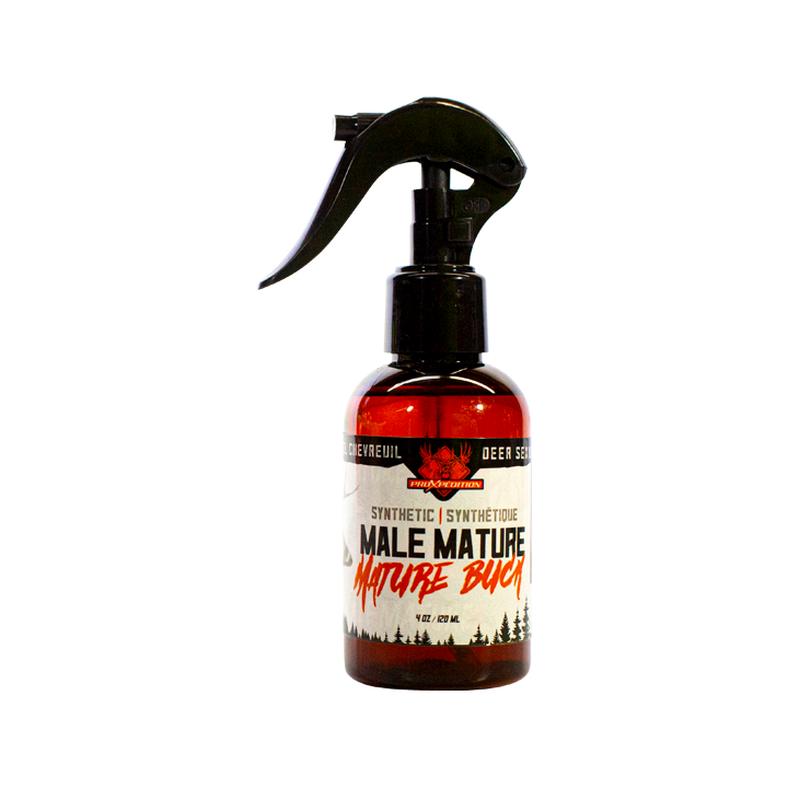 Comment attirer un mâle dominant? Achetez notre Leurre sexuel mâle mature qui laisse croire au mâle dominant qu’un chevreuil mâle agressif se promène dans son secteur. Un beau mâle vigoureux visitera votre secteur plus souvent. Le leurre agit sur une grande distance et encourage le mâle dominant à fréquenter la zone plus souvent. Pour l’utiliser, vous pouvez faire une ligne d'odeur sur votre territoire pour reproduire la présence d'un mâle mature. Vous pouvez aussi gratter le sol et y ajouter 15 coups de jet du vaporisateur. Il est aussi suggéré d’asperger l’odeur du Leurre sexuel mâle mature sur les arbres environnants pour imiter un faux frottage. Ce produit est très efficace lors des jours de pluie et se réactive avec la rosée matinale ou encore avec l’humidité de la tombée du jour.