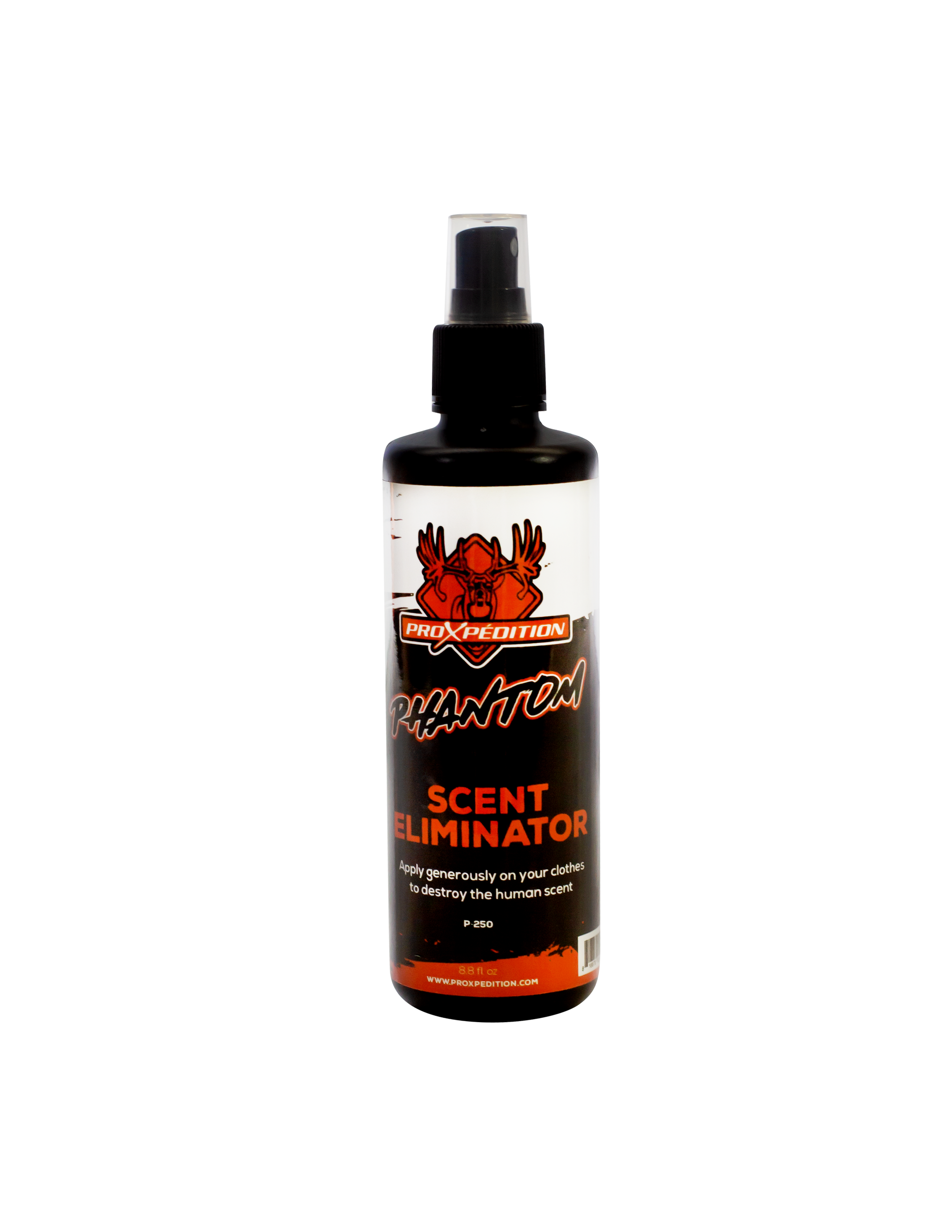 Passez inaperçu avec le destructeur d'odeur Phantom de Proxpedition. Votre odeur naturelle est facilement détectable par les animaux. Proxpedition a conçu en laboratoire ce bloque-odeur qui détruit les molécules qui pourraient vous trahir. Phantom est facile à utiliser. Il suffit de le vaporiser sur vos vêtements pour aider à prévenir la formation d'odeurs qui vous rendent détectables par les animaux. En l'appliquant généreusement, il imprègne vos vêtements et le contrôle d'odeur dure toute la journée. Vous ne pourrez plus vous en passer. Offert en bouteille de 250 ml