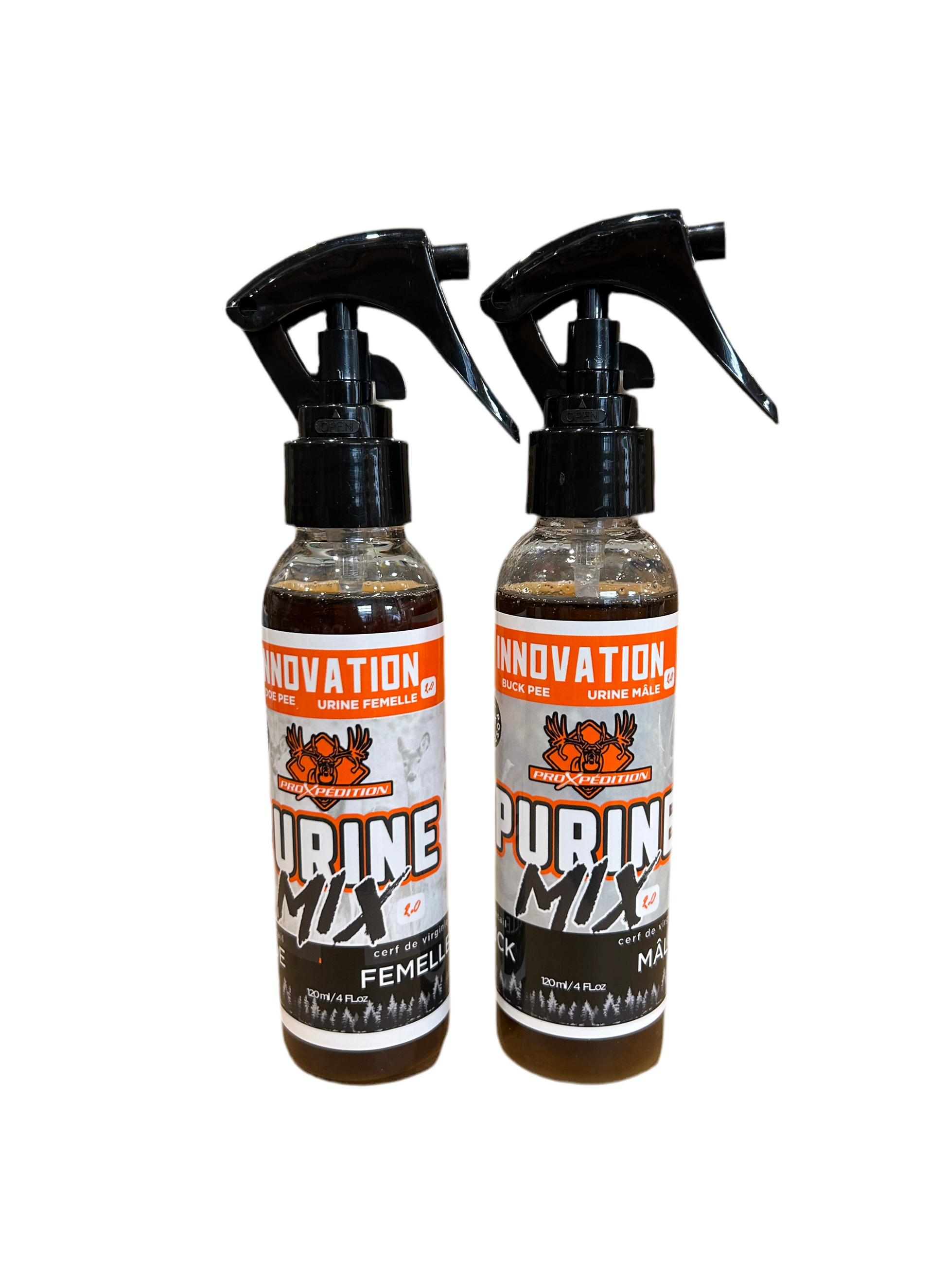 Ajoutez du piquant à votre coin de chasse en simulant la présence d'un harem de femelles en chaleur avec La nouveauté 2025 Purine Mix 2.0 Doe de Proxpedition. C'est un mélange d'urine synthétique à 100% imitant l’odeur de l’urine naturel de plusieurs chevreuils femelles. Aucun mâle ne pourra résister à la présence de plusieurs femelles sur son territoire. Des résultats épatants vous attendent.
